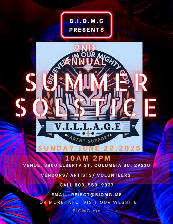 B.I.O.M.G. Presents The Summer Solstice event brought to you by The V.I.L.L.A.G.E. Parent Support group!
