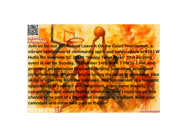 We invite you to join us for our 3rd annual Leave it on The Court Tournament, here at Swansea SC "Happy Town" We "Shoot Hoops Not People" ce...